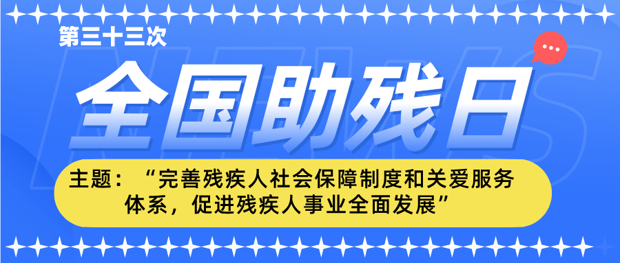 第三十三次全国助残日主题:“完善残疾人社会保障制度和关爱服务体系,促进残疾人事业全面发展”。